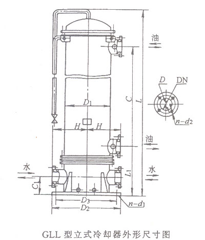 注:GLCA型與GLC型外形尺寸相同,油、水口有螺紋和法蘭兩種冷卻器 |